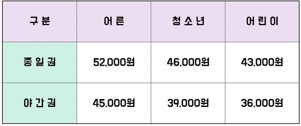 ※ 야간권은 오후 4시부터 입장입니다.