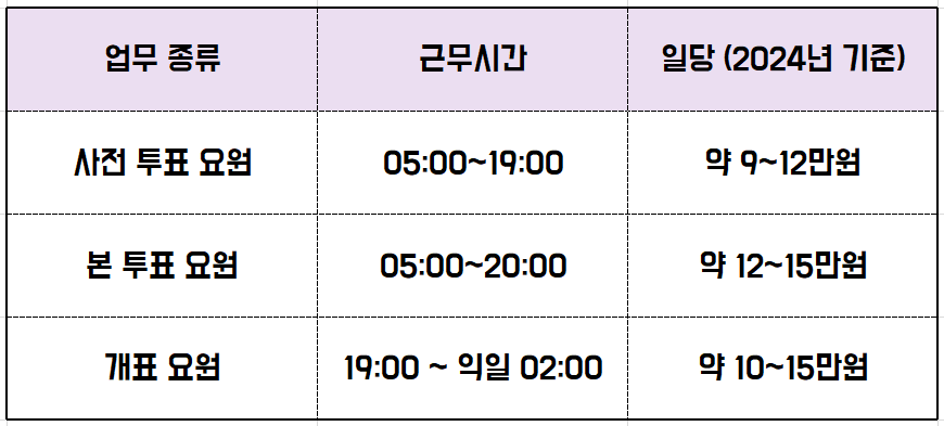 대선 투표 알바로는 크게 4가지로 구분할 수 있습니다.