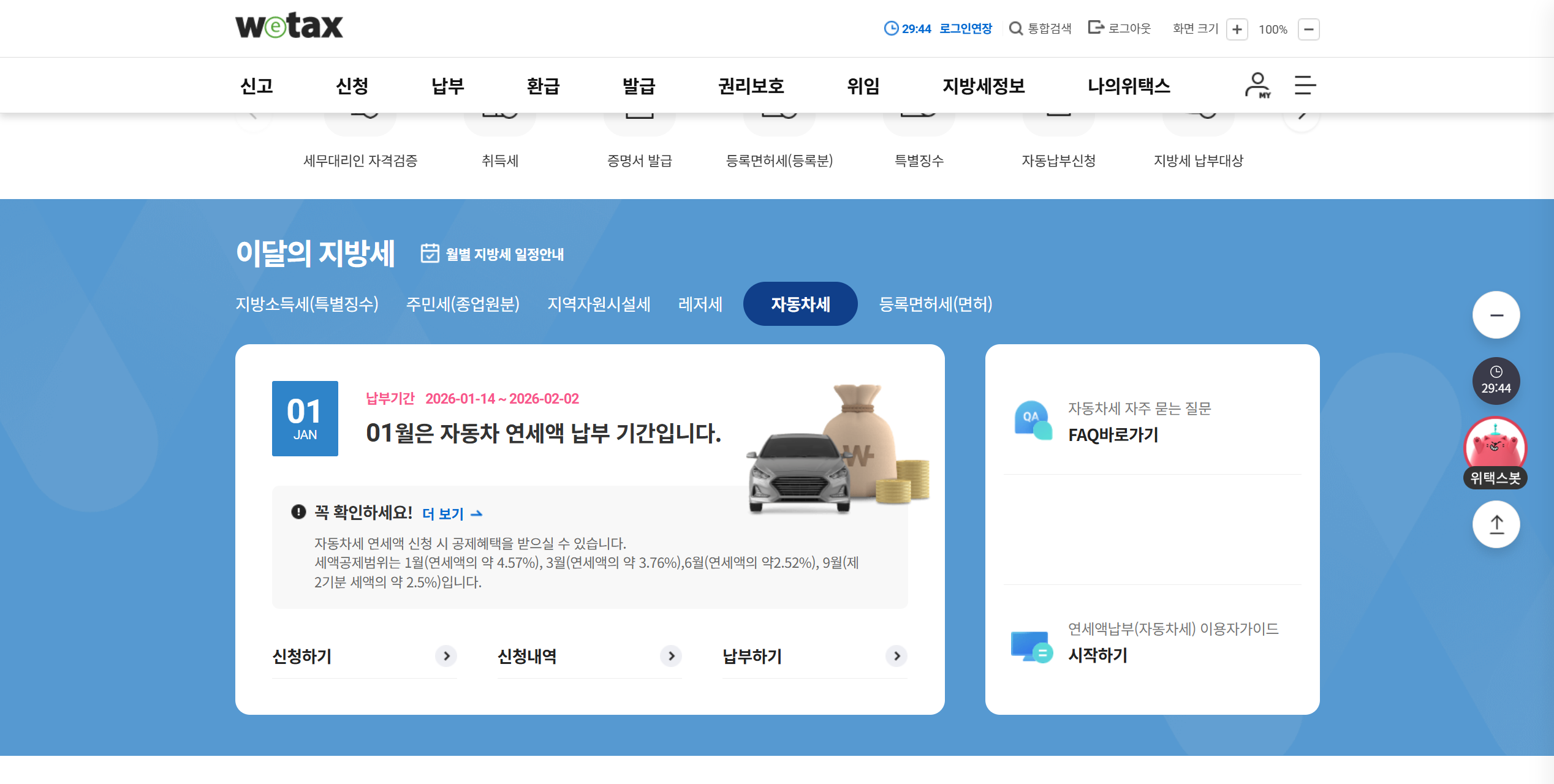 한 해를 시작하는 1월, 자동차세 연납신청으로 현금처럼 쓸 수 있는 절세 혜택 받아 가세요! 위택스나 이택스 앱에서 간편하게 끝낼 수 있으니 지금 바로 확인해 보세요