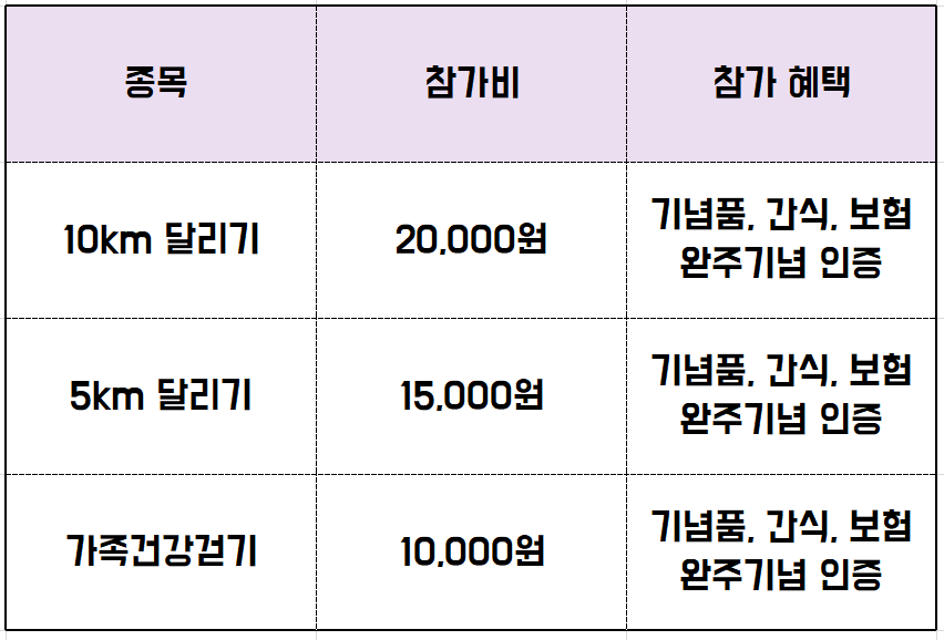 개별적으로 완주 시간을 확인하는 방식이며 유모차도 가능해서 산책하듯 참가도 가능합니다. 가족과 연인이 함께 뛰거나 걸어도 전혀 문제가 없는 비경쟁 마라톤 대회라고 볼 수 있습니다. 이색 데이트로 마라톤 대회도 많이 증가하는 추세여서 추억을 쌓을 수 있는 좋은 경험이 될 것 같습니다.